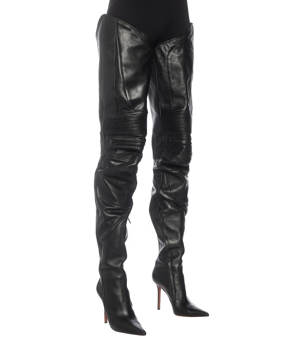 Nouvelles bottes pour femmes en cuir Pu noir à la mode pour dames de haute qualité bottes au-dessus du genou à bout pointu pour dames